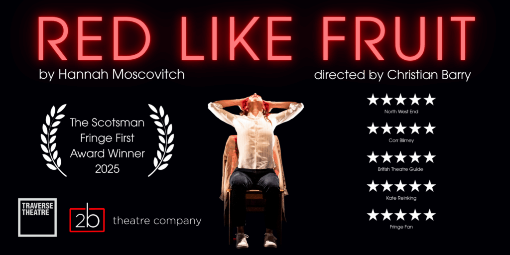 2b’s Red Like Fruit, a new play by Hannah Moscovitch, played at Traverse Theatre as part of TravFest25 from July 31st to August 24th.