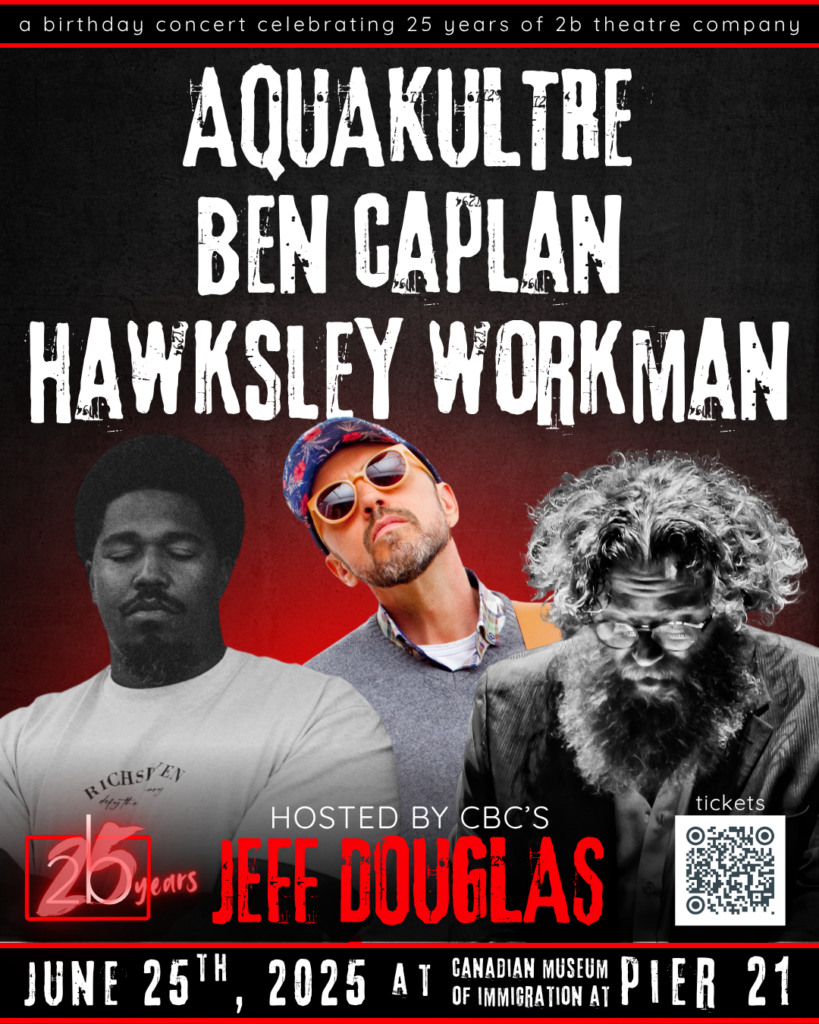 In June, we celebrated 2b’s 25th birthday with a massive concert honoring 2b’s past, present, and future. Hosted by Jeff Douglas, this unique show featured a triple bill, with mini-sets from past and present 2b collaborators Aquakultre, Ben Caplan, and Hawksley Workman.