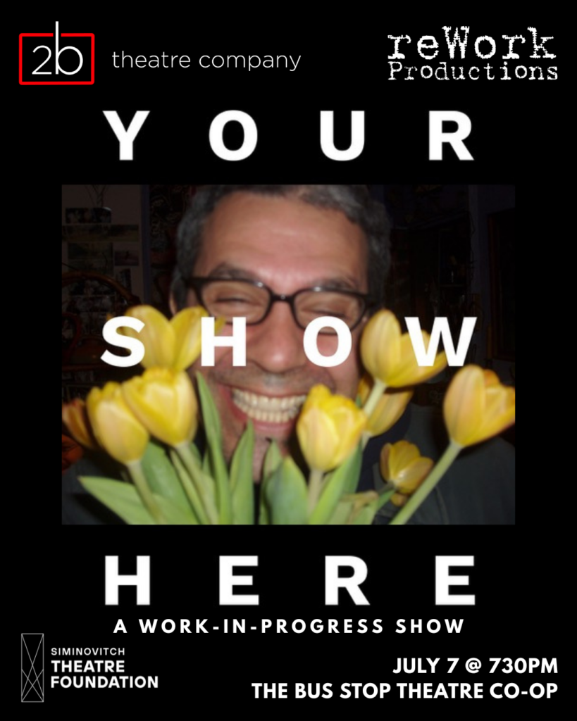 In July, 2b presented a sold-out work-in-progress showing of YOUR SHOW HERE by Daniel MacIvor, a new play by Rework Productions, supported by the Siminovitch Prize.