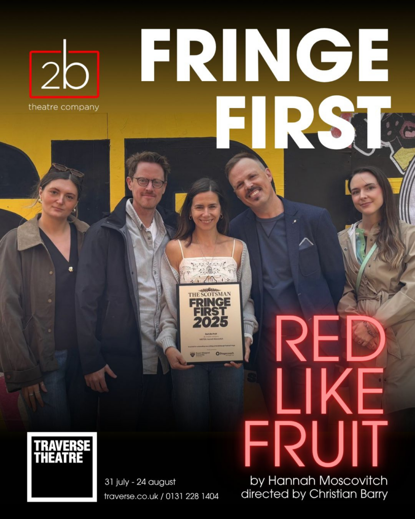 2b headed to Scotland in July and August, where Red Like Fruit took the Edinburgh Festival Fringe by storm. Again. Red Like Fruit received rave reviews from the UK and Scottish press, and received a Scotsman Fringe First Award!